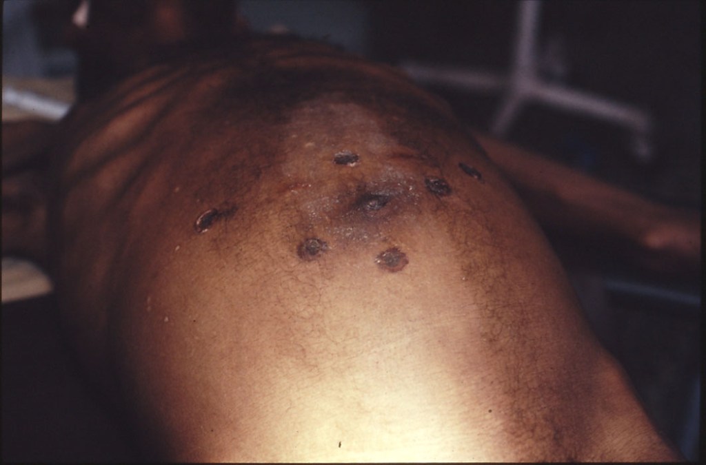 The chapter is entitled ‘A Different Culture’. I was working on a Mission Station as a Surgeon, which was a full time job. But soon I discovered that people had to be assessed and treated taking into account different things. One of these was their religion. For instance i) the dietary requirements can cause real problems treating a post operative case during Ramadan or ii) the strong religious commitment of some created unwillingness to be seen for examination particularly by a foreign infidel iii) There was a very high incidence of low large bowel obstruction due to volvulus and in treating this certain procedures, of necessity, needed the creation of a colostomy. This stopped them going into the mosque to pray. Sometimes they chose to die, although with experience we were able to reduce the incidence of needing a colostomy. This led to one of my areas of disagreement with the Surgical Department in Addis. I am delighted that my way has won the day all over Ethiopia by this time. As seen in the picture below patients, they often presented with infected burns on their abdomens – burnt to try and drive out the evil spirits causing the problem. Or often the patient had drunk the blood of an animal sacrificed to appease the spirits causing the problem. These last two situations were seen because of the animist background of the community.