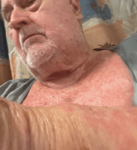 I was given several lotions to rub on the rash and the nurses (gloved of course) would apply it where I couldn’t do it for myself. But I couldn’t persuade anyone to give me strong pain relief as you would for a burn patient. I was very glad when after just over 3 weeks the fire went out. I got relief from hot showers which counteracted the burn. I think that the hospital would have had a huge water bill for that month! I had several other problems with heart, kidneys and lungs. So I had a number of doctors who made me feel a bit as if I was a collection of organs rather than a person – 2 dermatologists (one of whom actually touched me!), 2 geriatricians, a cardiologist, a chest guy, a urologist! I had 2 or 3 CT scans, 2 chest X-rays, 3 special heart studies, a couple of UltraSounds, a reading of my pacemaker, multiple blood tests (daily), a urine and a stool test, frequent (QID) blood pressure and oxygen monitoring. And just when I was about to leave one of the registrars listened to my heart, but through my clothes. Seriously everyone was very nice to me (except one nurse) but I felt that I was untouchable! How I would have loved someone to sit down, talk to me, and with their hands (no doubt hidden in gloves) examine me! Now 3 1/2 months after discharge I feel as if I’m as good as I was when I took that b…..y tablet!